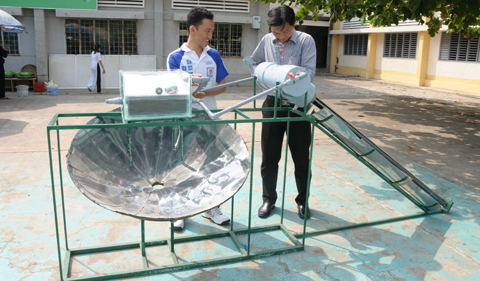 Xem mô hình lọc nước mặn thành ngọt bằng chảo Parabol của thầy trò Trương Hữu Dũng - Nguyễn Tấn Lợi: