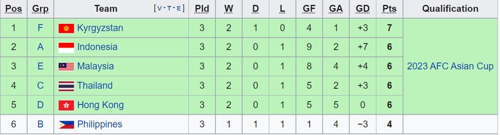 Giành chiến thắng tưng bừng 7-0, Indonesia chính thức góp mặt ở VCK Asian Cup 2023 khi là 1 trong 5 đội nhì có thành tích tốt nhất cùng với Thái Lan và Malaysia. Không tính năm 2007 (đồng chủ nhà) thì đây là lần đầu tiên sau 18 năm, Indonesia giành vé tham dự Asian Cup.