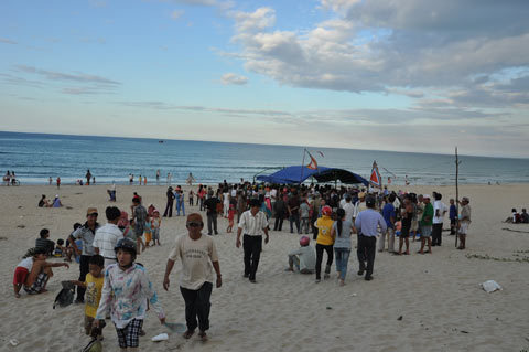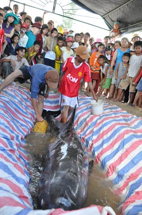 Hàng ngàn người dân ven biển trong khu vực và các xã lân cận đã kéo đến xem cá ông lụy (chết). Nhiều người dân đã sờ cá ông để “lấy hên” theo phong tục truyền thống vùng biển khiến cá càng yếu dần.