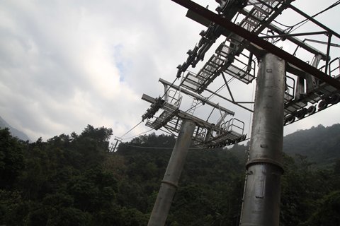 Hệ thống cáp treo đưa du khách dọc đường suối và đi qua thác Bạc ở độ cao 200m từ chân núi lên tới đỉnh |