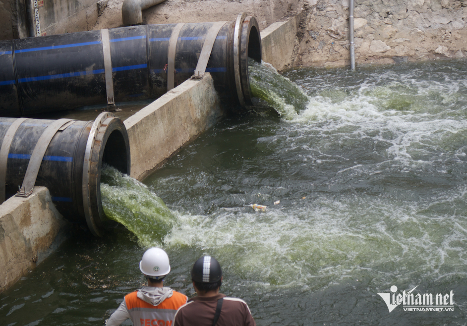 Trước đó, ngày 9/9, nước từ Hồ Tây đã được dẫn qua tuyến ống riêng biệt, không hòa lẫn với dòng nước thải bổ cập cho sông Tô Lịch.