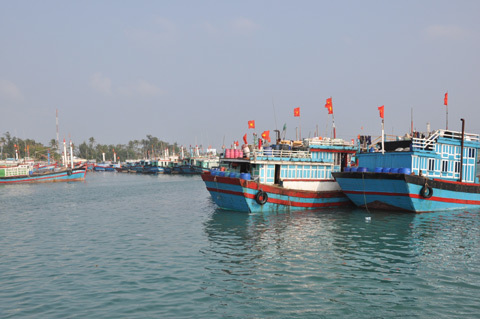Nhiều tàu cá đang vào trú gió tại cảng Lý Sơn