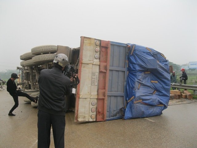 chứng kiến vụ tai nạn cho biết, do xe chạy nhanh, cua gấp, lại chở gỗ với khối