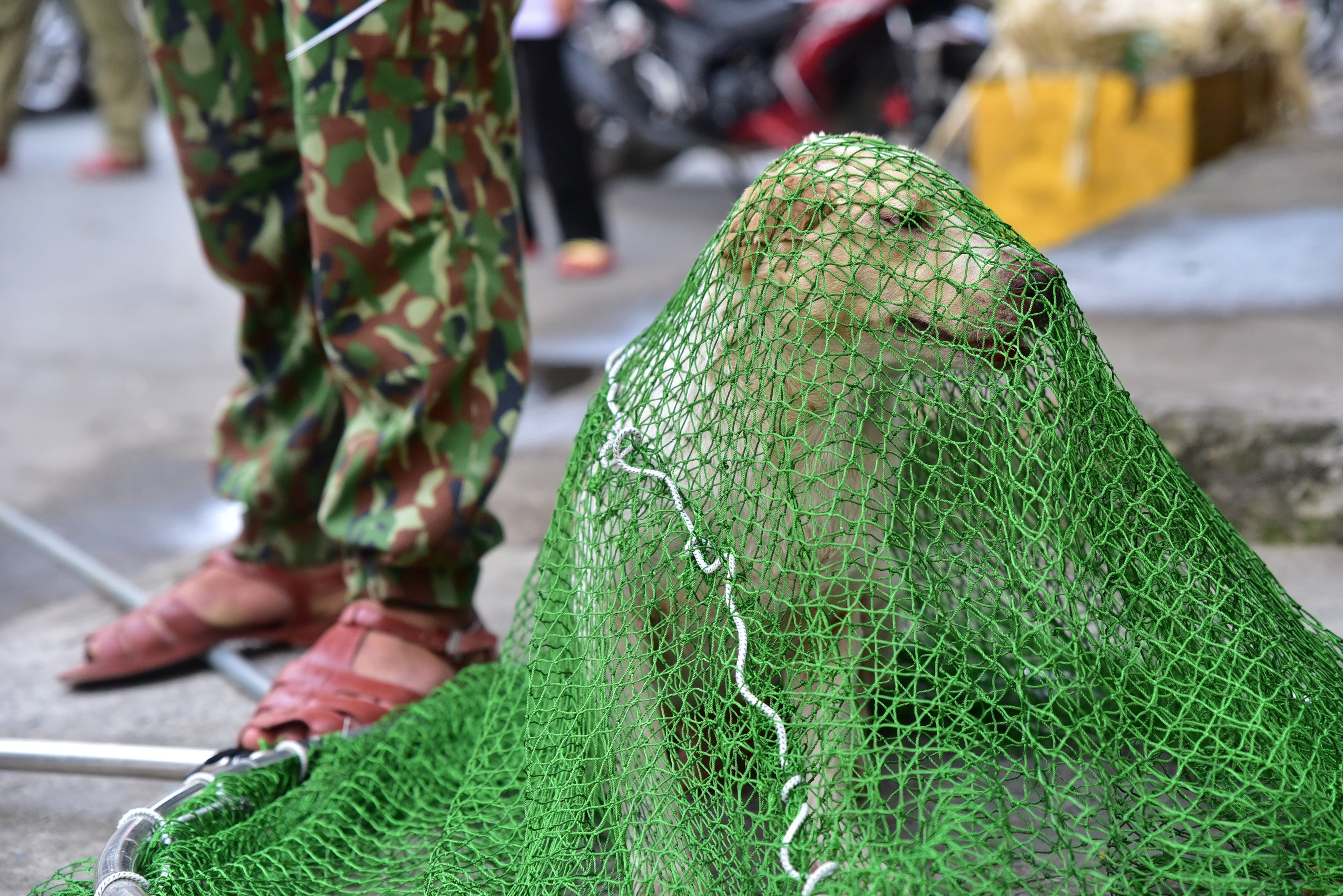 Dù bố trí đến 4-5 người cùng vây bắt nhưng một số chú chó vẫn chạy thoát vào nhà hoặc các khu vực cây cối rậm rạp. Một chú chó bị bắt vì thả rông, không rọ mõm Chó thả rông sau khi bị bắt sẽ được gắn số thứ tự, lập danh sách theo dõi