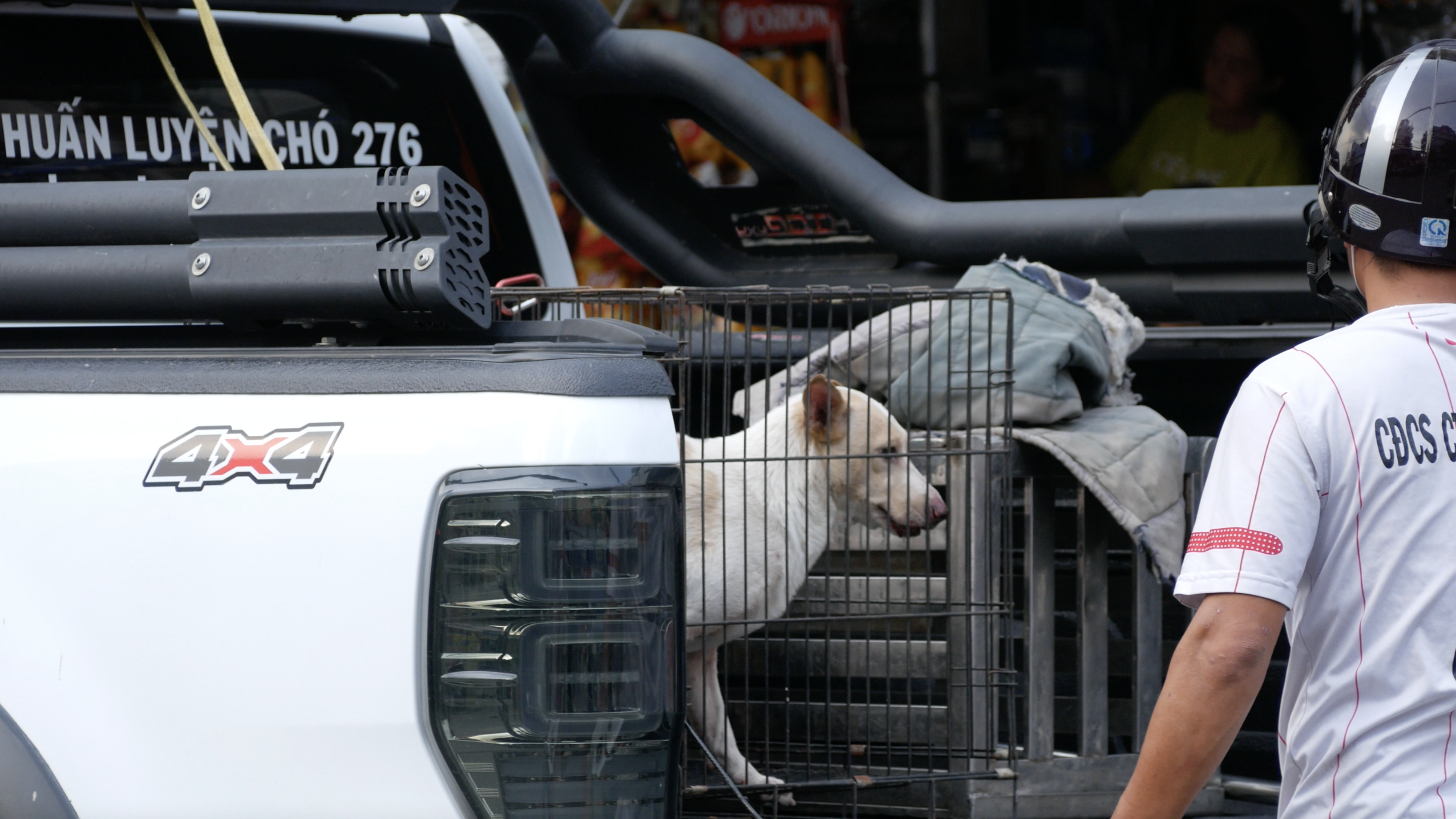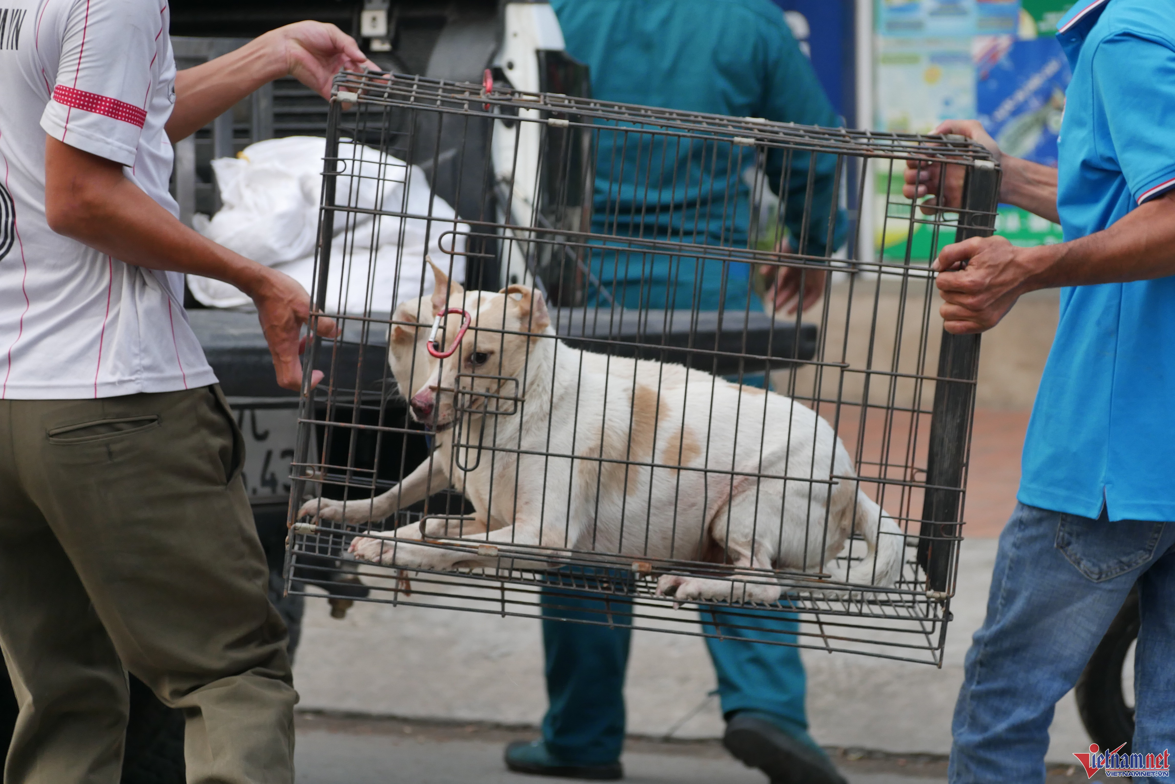Chó thả rông được đưa lên các xe chuyên dụng của đội để đưa về khu tạm giữ.