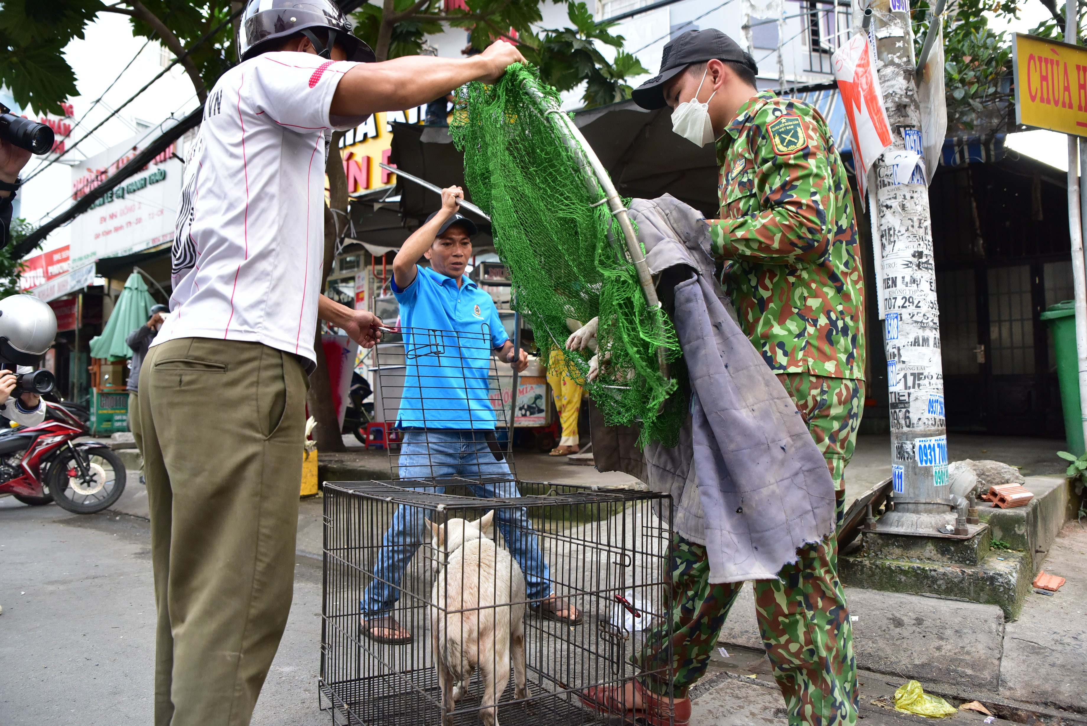 Đội chuyên trách bắt chó thả rông và động vật mắc bệnh dại, có dấu hiệu mắc bệnh dại của phường Hiệp Bình Chánh (TP Thủ Đức) thường xuyên tổ chức đi tuần tại các khu vực công cộng, tuyến đường đông dân cư. Đội bắt chó mang theo dụng cụ chuyên dụng tiếp cận những nơi người dân thả rông chó ra đường, không rọ mõm.