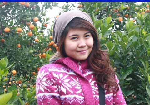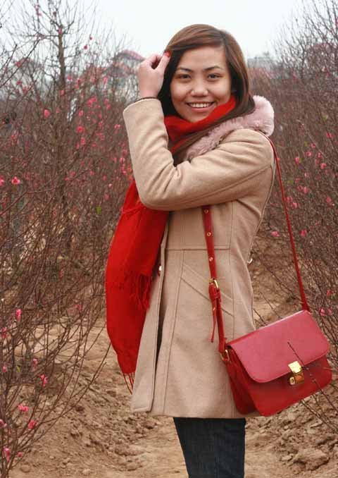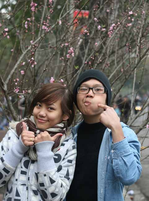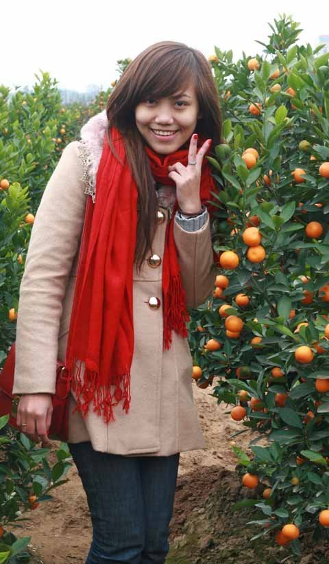 | Xúng xính pose hình với đào quất Nhật Tân |