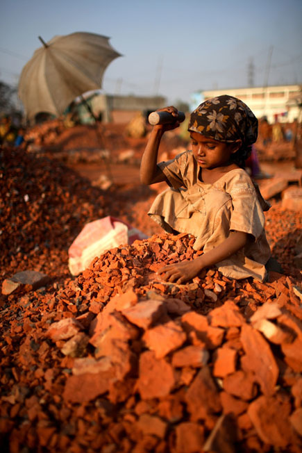 Bé Munna làm việc trong một nhà kho. Mỗi tháng thu nhập của em là 500 taka (7 USD), mỗi ngày phải làm việc 10 tiếng đồng hồ.