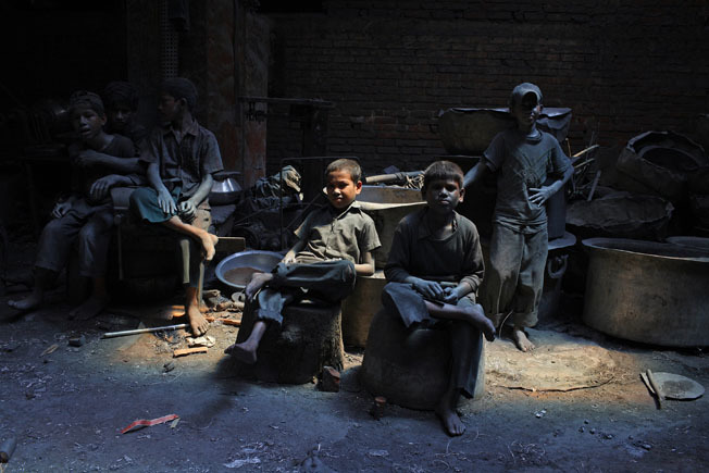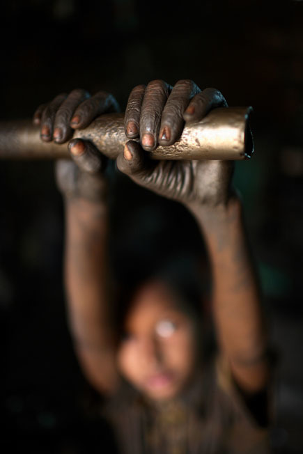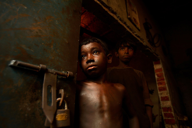 Những phút thảnh thơi hiếm hoi của các em nhỏ tại nhà máy sản xuất nổi bạc. Các em phải làm việc 10 tiếng mỗi ngày và kiếm được 200 taka mỗi tuần.