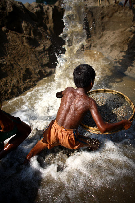 Một em nhỏ làm tại nhà máy sàng