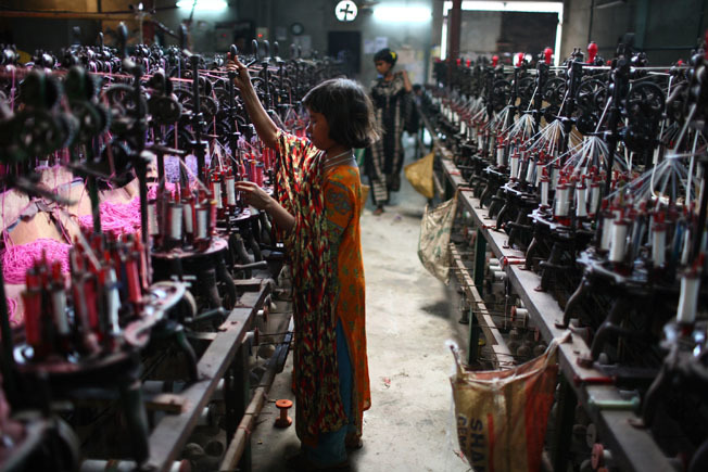 Một lao động trẻ em tại nhà máy dệt ở Dhaka.