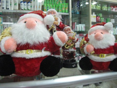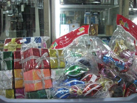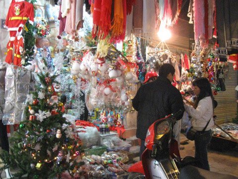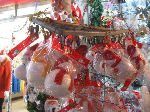 Không khí Noel đã ngập tràn trên các con phố ở Hà Nội. Không chỉ có phố Hàng Mã, Lương Văn Can, đồ trang trí và quà Giáng sinh giờ đây được bày bán ở khắp mọi nơi, từ các cửa hàng quà lưu niệm đến các siêu thị lớn nhỏ.