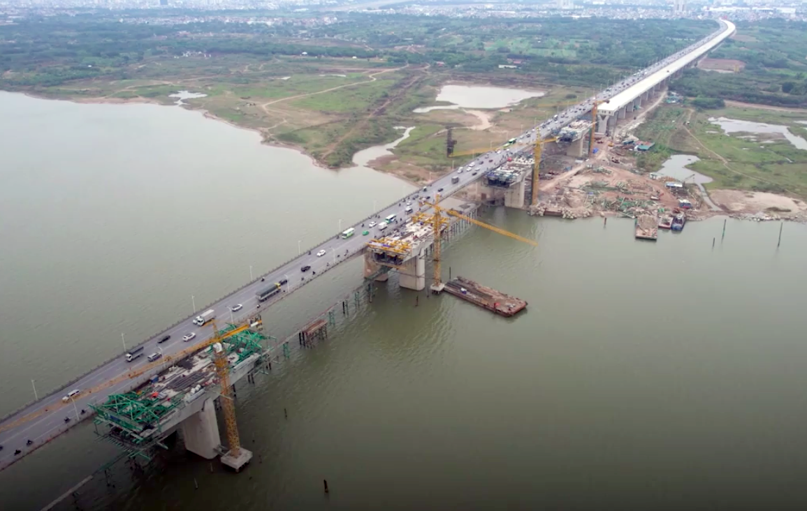 Cụ thể, phần đầu cầu ở hai phía bãi bồi sông Hồng đã hoàn thành. Bên ngoài sông, 5 trụ cầu được cho là hạng mục phức tạp nhất cũng đã được làm xong.