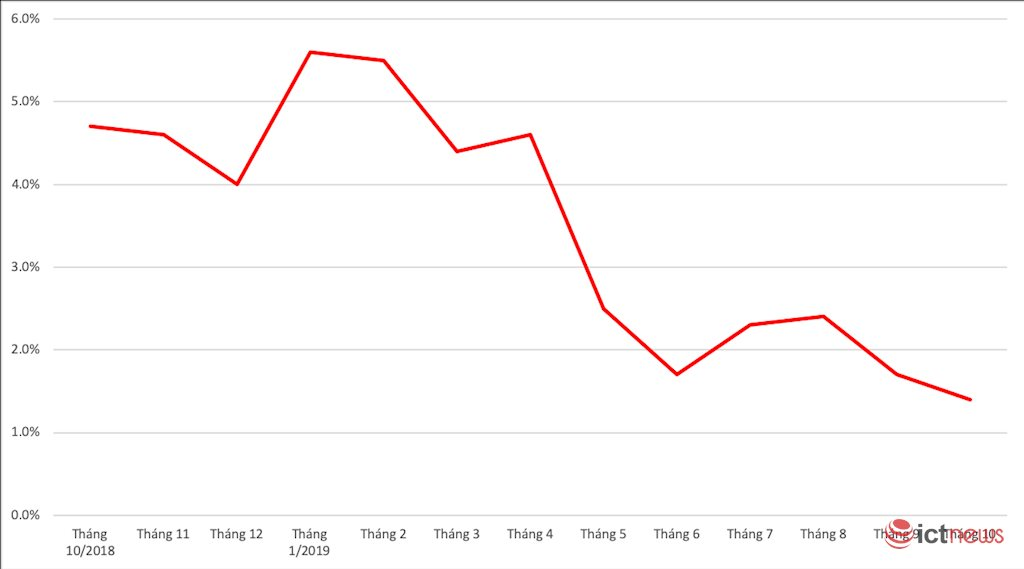 Báo cáo của GfK cho thấy, tháng 10/2019 thị phần smartphone Huawei tại Việt Nam chỉ hơn 1%, xuống thấp nhất trong vòng hai năm trở lại đây. Hồi đầu năm hãng này từng đứng vị trí thứ 4 các hãng smartphone lớn nhưng ngay sau đó tụt dốc dần khi nằm trong tâm điểm cuộc chiến thương mại Mỹ - Trung.