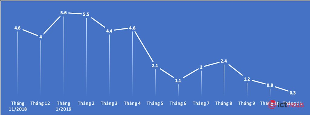 Thống kê của công ty nghiên cứu thị trường GfK cho thấy vào tháng 1/2020, thị phần smartphone của Huawei xuống rất thấp, chiếm chưa tới 1% tổng lượng smartphone bán ra tại Việt Nam. Trong khi chỉ một năm trước đó, tháng 1/2019, hãng này có tới 5,6% thị phần, đứng thứ 4 trong các hãng smartphone bán tốt nhất.