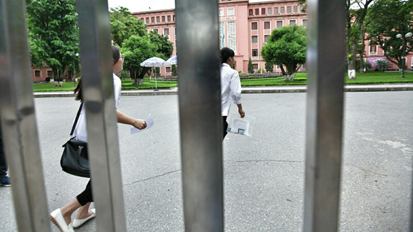 Sáng 2/7, tại điểm thi Trường ĐH Thủy lợi, 14 thí sinh bị đình chỉ thi vì mang điện thoại hoặc tài liệu vào phòng thi. Trong số này có một số thí sinh đang tham gia nghĩa vụ công an.