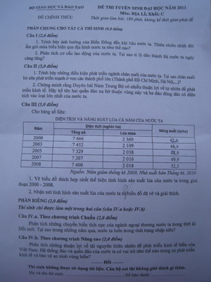 Tôi thấy đề Địa lí hay mang đậm tính thời sự, như vấn đề nhập siêu ở nước ta và đặc biệt là vấn đề biển đảo. Đây là hướng ra đề tích cực, phù hợp với xu thế hiện nay, nó đòi hỏi thí sinh phải biết quan tâm đến các vấn đề lớn của đất nước, của dân tộc. Đó cũng là mục tiêu của bộ môn cũng như của nhà trường, của hệ thống giáo dục đất nước.