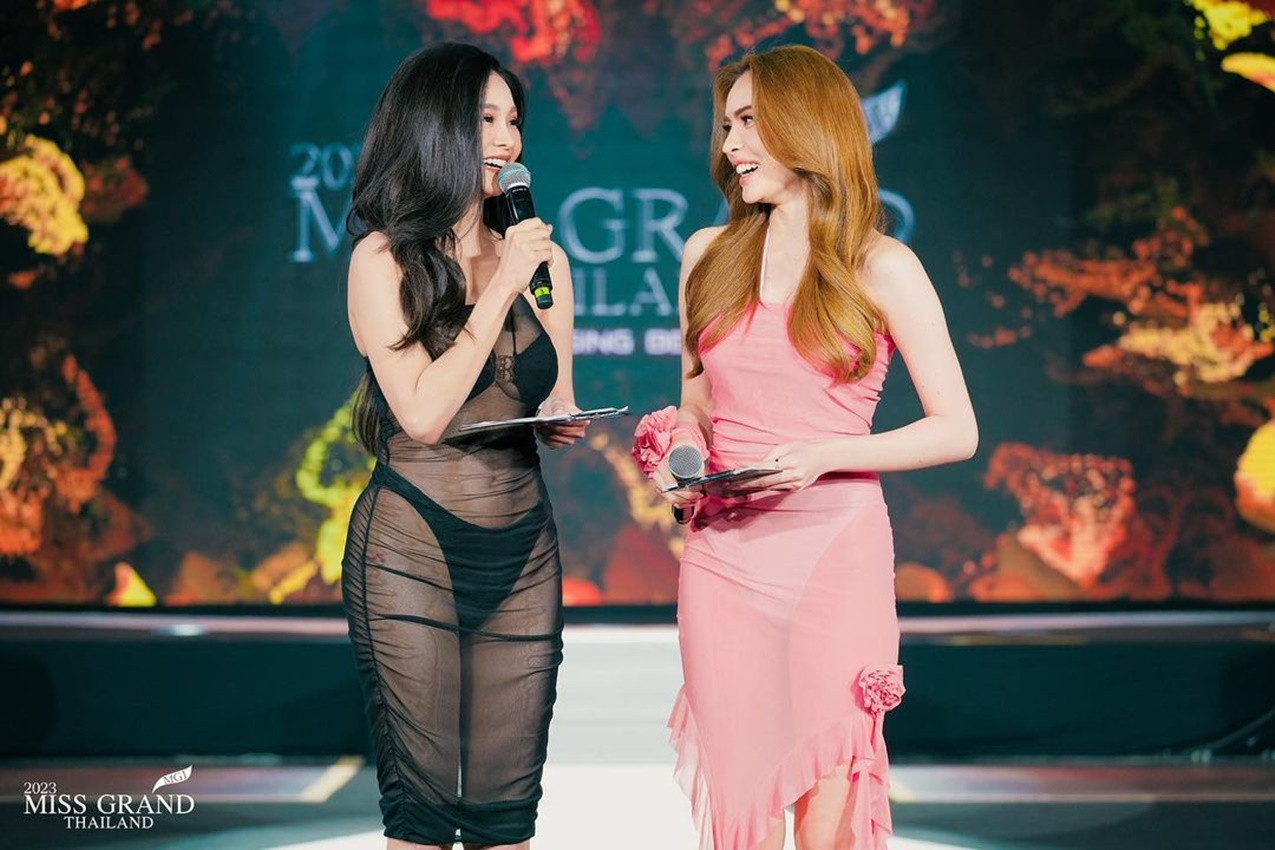 Đảm nhận vai trò MC của đêm thi là đương kim Hoa hậu Hòa bình Thái Lan 2022 Engfa Wahara và á hậu 5 Charlotte Austin.