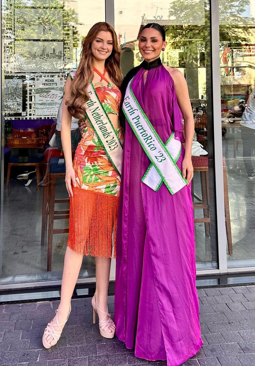 Đại diện Puerto Rico Victoria Arocho là một trong những thí sinh đến sớm nhất. Trong ngày đầu tại Miss Earth 2023, người đẹp diện trang phục xuyên thấu với tông màu hồng chủ đạo độc đáo, khoe vòng eo gợi cảm và nhan sắc trẻ trung, cá tính.