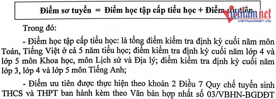 Nhà trường sẽ xét từ cao xuống thấp cho đến khi tuyển đủ chỉ tiêu được giao. Trường hợp xét đến chỉ tiêu cuối cùng có nhiều thí sinh có cùng điểm xét tuyển thì nhà trường sẽ xét chọn theo thứ tự ưu tiên như sau: Có điểm sơ tuyển cao hơn; có tổng điểm kiểm tra định kỳ cuối năm học lớp 5 các môn Toán, Tiếng Việt, Khoa học, Lịch sử và Địa lý cao hơn; có hộ khẩu thường trú trên địa bàn quận Cầu Giấy.