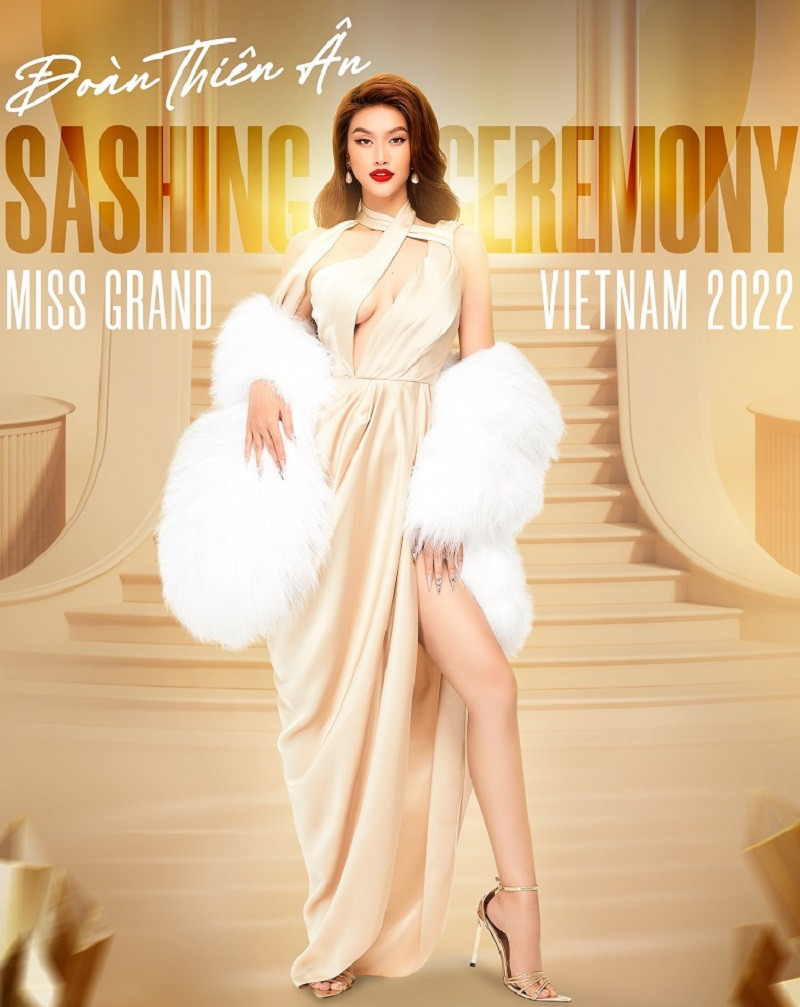Tối 5/10, Thiên Ân nhận sash Việt Nam tại buổi lễ trao sash của cuộc thi Hoa hậu Hòa bình Quốc tế 2022. Chủ tịch cuộc thi tiết lộ Thuỳ Tiên kiếm được 2-3 triệu đô trong nhiệm kỳ.