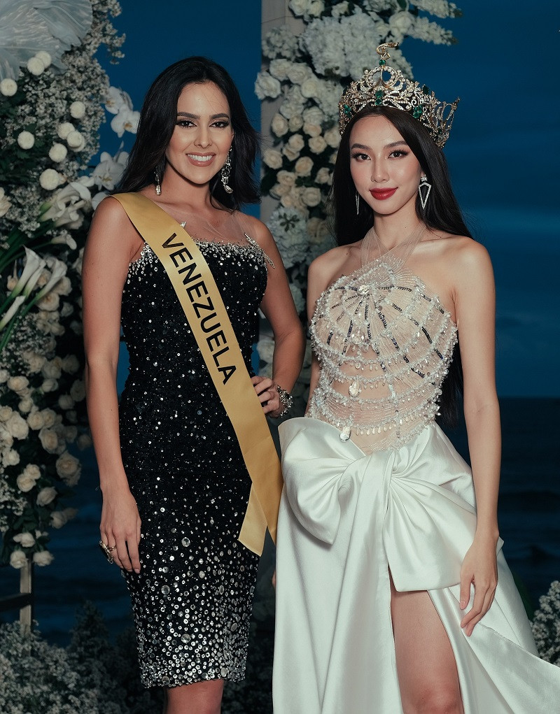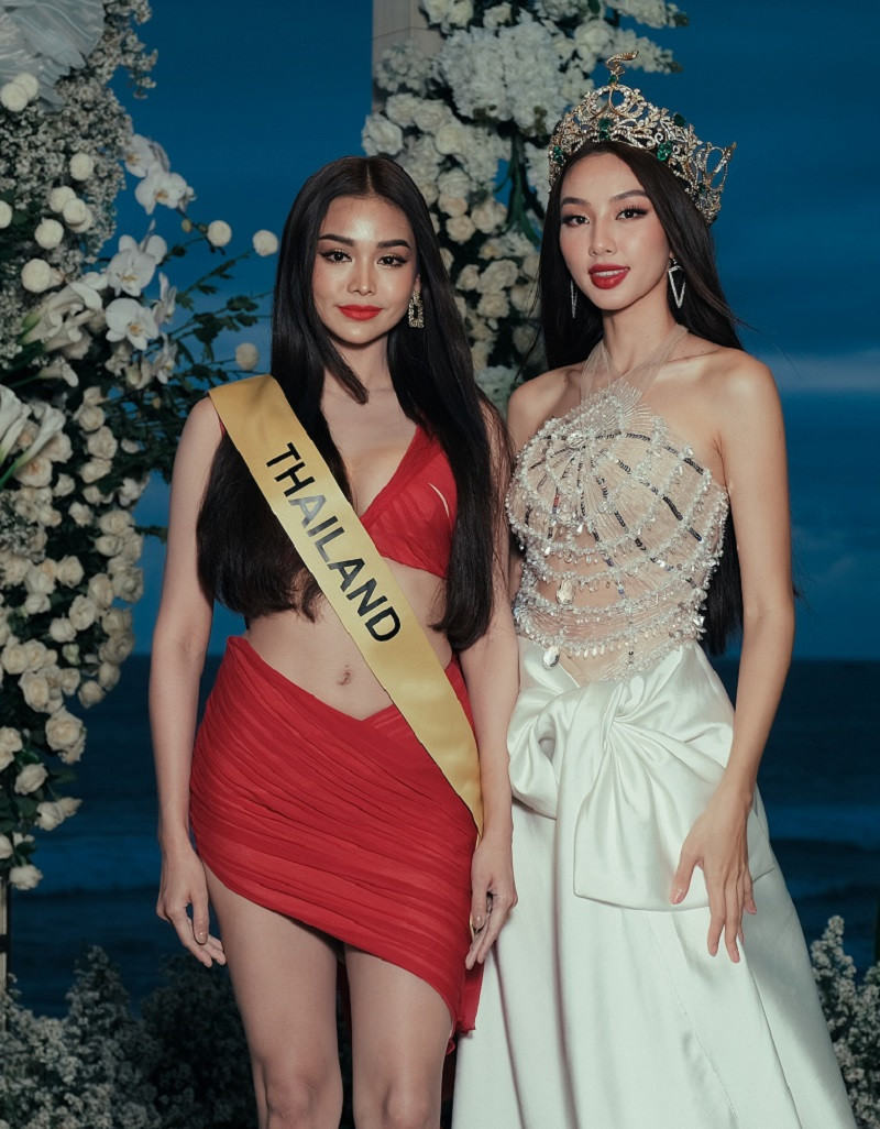 Thuỳ Tiên bên đại diện các quốc gia tham dự cuộc thi Hoa hậu Hòa bình Quốc tế 2022.