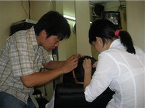 Đến thăm “Chấy, nhổ tóc bạc” vào một chiều muộn, căn phòng nhỏ chừng mười mét vuông, bốn chiếc ghế tựa salon đều đã kín khách, trong nền nhạc thính phòng du dương, ba nhân viên say sưa tìm nhổ tóc sâu, tóc bạc.
