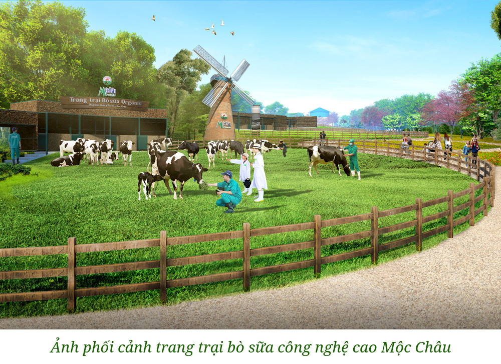 Trong đó Trang trại bò sữa công nghệ cao sẽ có quy mô đàn bò 4.000 con bò sữa, với vốn đầu tư 700 tỷ đồng, dự kiến cung cấp 20 triệu lít sữa tươi/năm làm nguyên liệu cho nhà máy sữa. Trang trại sử dụng công nghệ hiện đại, máy móc thiết bị được đầu tư đạt các tiêu chuẩn mới nhất châu Âu, Mỹ… đáp ứng tiêu chuẩn quốc tế, tiết kiệm nhiên liệu và thân thiện với môi trường.