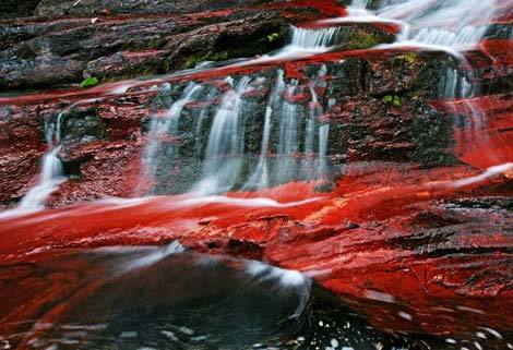 Màu đỏ - màu của máu người - tượng trưng cho niềm đam mê, lửa, tình yêu và sự giận dữ. Trong các nền văn hóa phương Đông, màu đỏ cũng hàm chỉ sự may mắn và thịnh vượng. Màu sắc này cũng xuất hiện khắp thiên nhiên, từ các ngôi sao đến những chiếc lá đang chết dần chết mòn. Trong ảnh trên, các phiến đá giàu khoáng chất sắt tạo thành lớp nền "gỉ" đỏ cho nước chảy qua ở Công viên quốc gia Waterton Lakes ở Alberta, Canada.