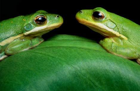 Ở một nơi hẹn hò bí mật về đêm tại vùng đồng bằng sông Atchafalaya, bang Louisiana, Mỹ, hai con ếch xanh đang mặt đối mặt "tâm sự" trên một chiếc lá. Màu xanh lục có thể là màu sắc phổ biến nhất trong tự nhiên. Nó hiện diện ở khắp mọi nơi, từ lá cây, cỏ và rêu cho tới vẻ ngoài của các con rắn, bướm, ... Màu xanh lục tượng trưng cho cuộc sống, sức sống, thiên nhiên và cả quan điểm bảo vệ môi trường.