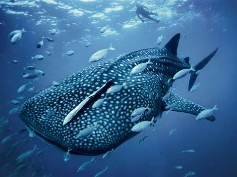 Là màu sắc thống trị các đại dương và bầu trời, màu xanh lam cũng tương đối phổ biến trong tự nhiên, ví dụ như trên lớp da đỏm dáng của một con cá mập voi (ảnh trên) hay trên lông vũ của chim công. Qua nhiều thế kỷ, màu sắc này đã trở thành đại diện cho sự yên ả, lạnh lẽo, huyền bí và nỗi buồn.