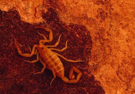 Bọ cạp đã sống sót qua hàng trăm triệu năm qua nhờ khả năng thích nghi cao với mọi điều kiện sống. Một vài loài, chẳng hạn như loài bọ cạp màu cam sống tại hẻm núi Grand Canyon, Mỹ trong bức ảnh này, thường cư trú ở các vùng sa mạc, trong khi một số khác định cư trú tại các khu vực nhiệt đời, rừng ôn đới và thậm chí trên những đỉnh núi cao chót vót thuộc dãy Himalaya.