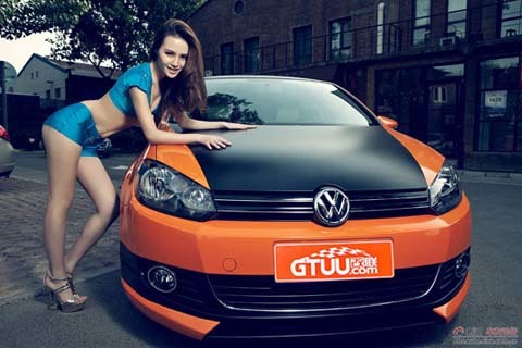Chiếc Volkswagen màu sắc sặc sỡ cũng không hút mắt bằng người đẹp gợi cảm kề bên.