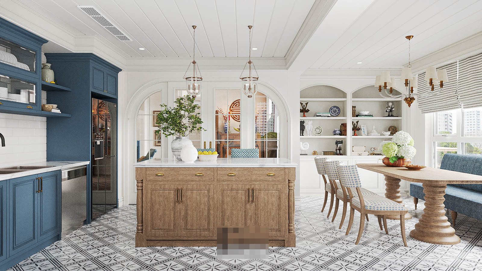 Với căn hộ lớn, nhóm đã biến nó thành "biệt thự" đồng quê đầy bình yên nằm ở lưng chừng trời, để gia chủ có nơi an trú yêu thương bên gia đình.
