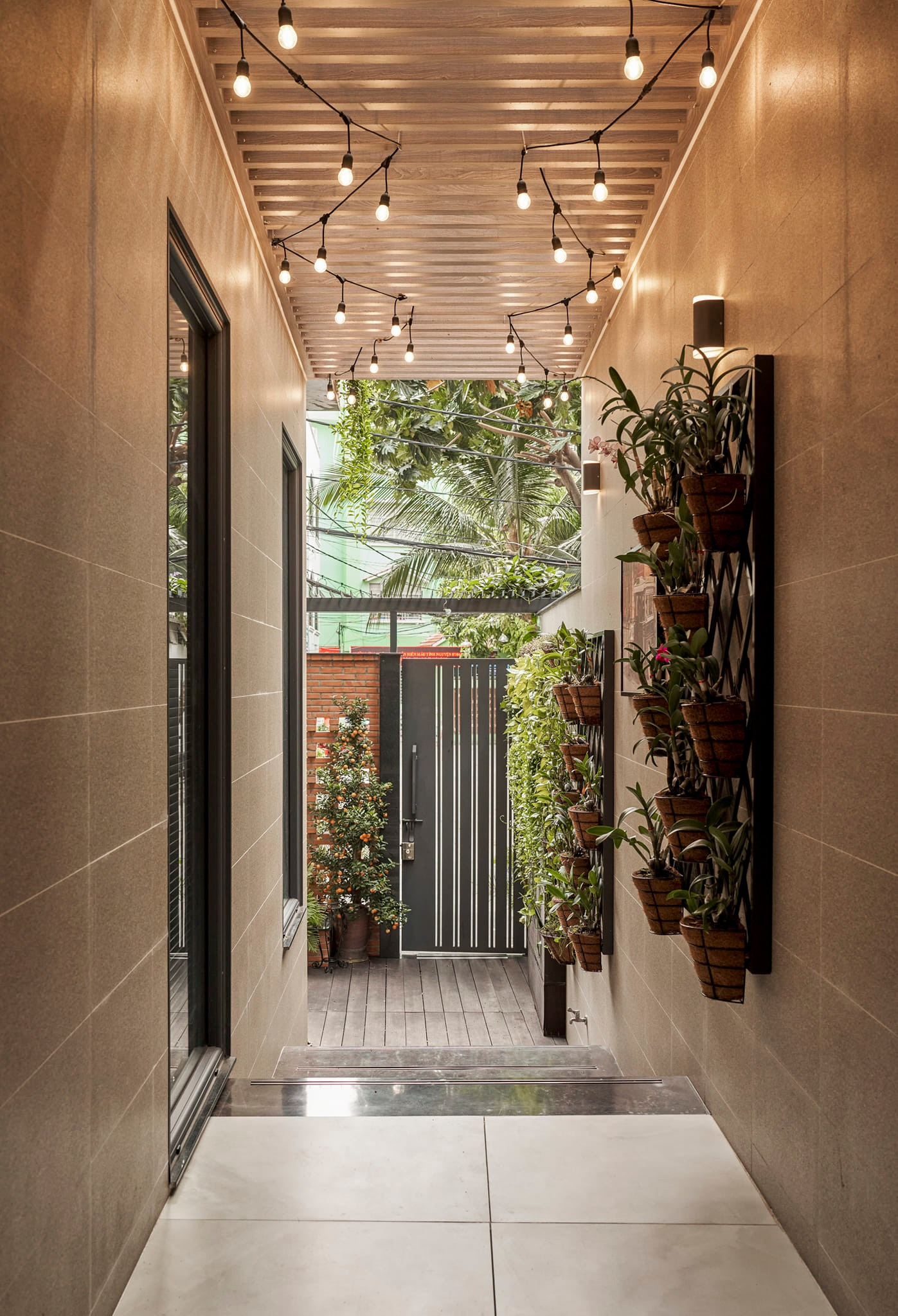 Cạnh bếp là khe thoáng, chính là khoảng thở đối lưu gió cho nhà. Ánh sáng vàng với độ sáng vừa đủ, không quá gắt nhưng vẫn chiếu sáng từng khu vực.