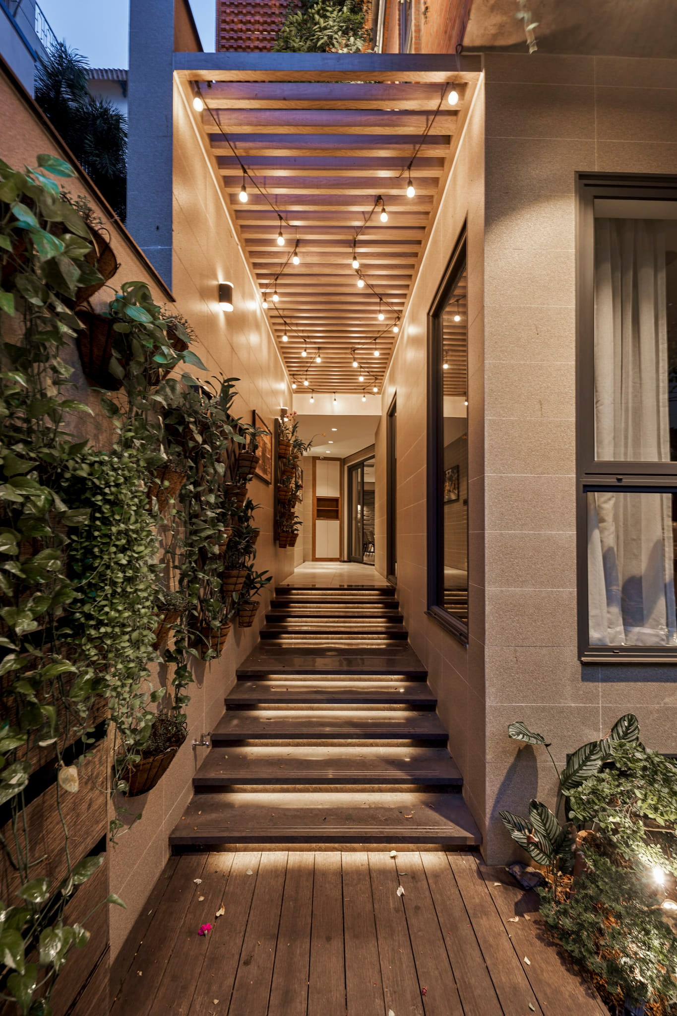 Bất cứ khoảng không nào cũng được bố trí tiểu cảnh đẹp mắt, gây ấn tượng và tràn đầy sinh khí khi bước vào nhà. Hồ cá koi mini là giải pháp điều hòa nhiệt độ cho nhà vào ngày nắng nóng, giảm bức xạ nhiệt từ hướng Tây.