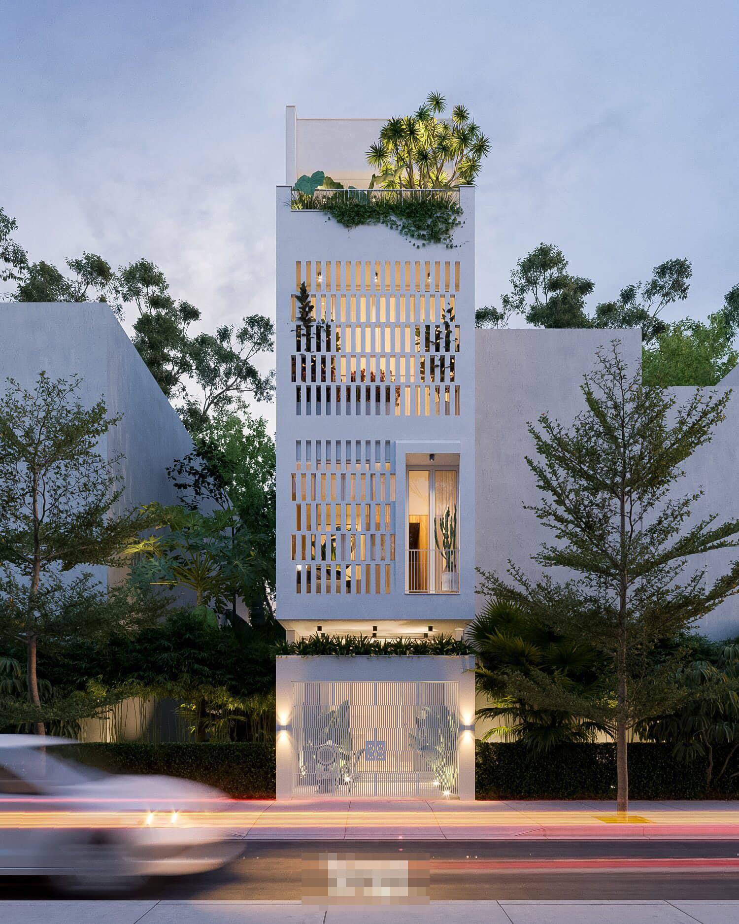 Căn nhà phố 3 tầng 1 tum ở Đà Nẵng có diện tích hạn chế (4x16m) nên nhóm kiến trúc sư đã lựa chọn thiết kế theo phong cách tối giản, kết hợp tông màu trắng làm chủ đạo tạo cảm giác thoáng đãng, rộng rãi hơn cho nhà.