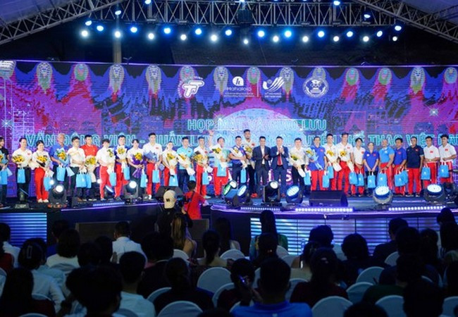 Các ca sĩ, vận động viên góp mặt trong đêm nhạc để cổ vũ tinh thần cho Đoàn Thể thao Việt Nam TP. HCM và các tỉnh Khu vực phía Nam trước thềm SEA Games 31.