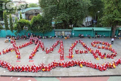 | Chữ X'Mas được các ông già- bà già Noel kì công xếp. (Ảnh Ione) |