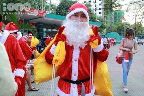 Chiều 18/12, hơn 300 bạn trẻ trong trang phục ông già - bà già Noel đỏ thắm diễu hành khắp phố phường Sài Gòn như gửi lời "Giáng sinh vui vẻ và an lành" đến với tất cả mọi người.