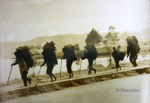 Một đoàn người Lạch đang gùi củi đi qua hồ Xuân Hương ra phía trung tâm thành