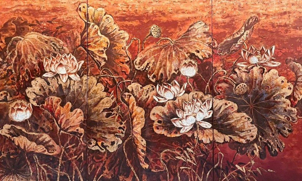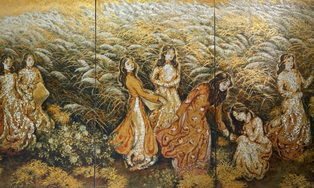 Triển lãm tranh sơn mài Sắc xuân tổ chức tại Nhà trưng bày triển lãm TPHCM, kéo dài đến hết tháng 2.