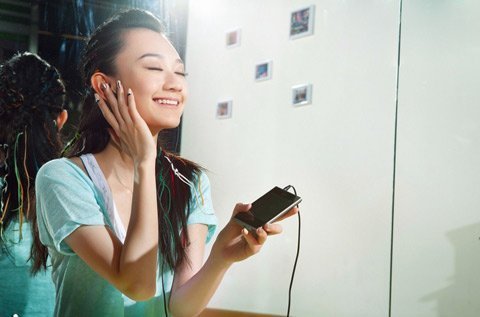 Thiếu nữ xinh như mộng chụp hình với smartphone