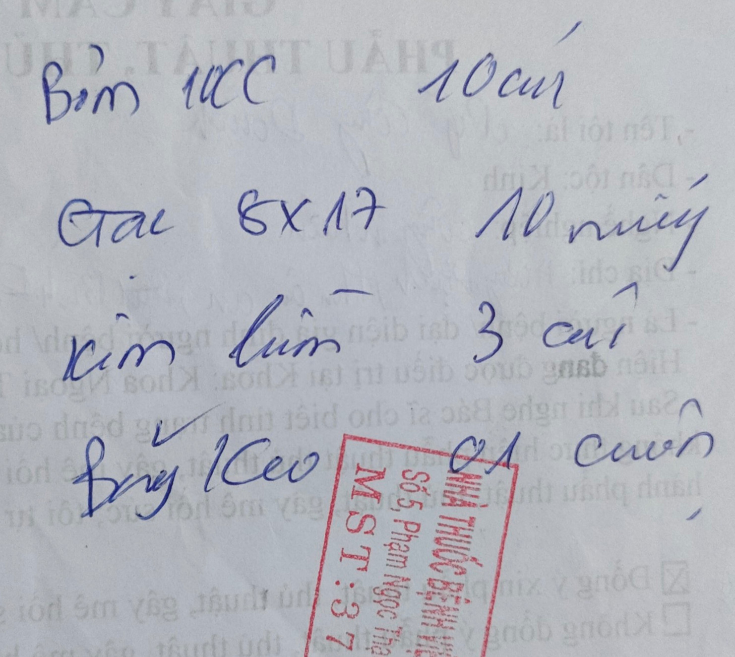 Theo chị Lan, nhà thuốc tư nhân bán các vật tư cho ca phẫu thuật với giá 2,5 triệu đồng mà không có hoá đơn. Khi yêu cầu đơn giá còn bị tỏ vẻ khó chịu và cũng không cung cấp được.