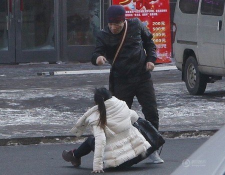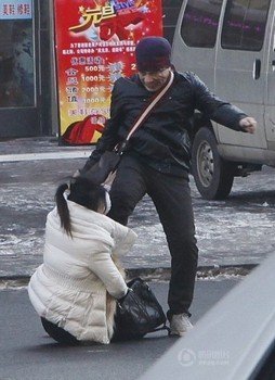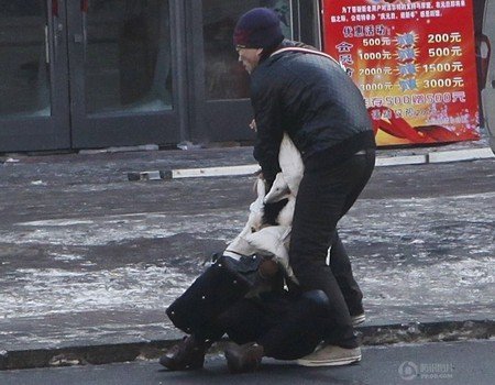 Trận ẩu đả đã tạm thời dừng lại khi nhiếp ảnh gia Song Tiebiao yêu cầu người đàn ông ngừng tay nhưng ngay sau khi ông Song rời đi, người đàn ông lại đuổi theo cô gái và bắt đầu đánh đập cô lần nữa.