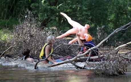 Lực lượng cứu hộ đã tìm thấy cặp đôi, đều 19 tuổi, đang bám vào một cái cây sau khi để tuột mất con búp bê ở sông Yarra, Victoria. Cảnh sát sau đó đã cảnh báo hai thiếu niên này rằng món đồ chơi thổi phồng đó không được công nhận là một thiết bị để nổi.
