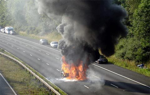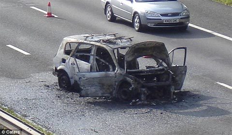 ca-pô trong lúc tắc đường. Nhưng vài phút sau đó, chiếc xe bốc cháy dữ dội.