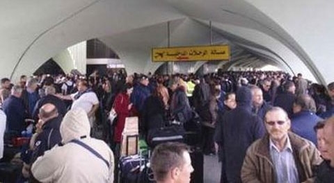 Sân bay chật cứng người muốn rời khỏi Libya. “Tôi mất hơn sáu giờ để từ bãi đỗ xe đến được nơi kiểm tra vé”, Sany nói. Nhà chức trách tại sân bay đã đóng các cửa ra vào, khiến hàng trăm người chen chúc xô đẩy cố vào trong. Hành khách ngồi chờ máy bay giữa một đống giấy gói thực phẩm và chai lọ. Mưa nhỏ xuống từ trần nhà. Màn hình tivi thông báo giờ khởi hành đã tắt, thông tin chỉ được lan truyền trong đám đông với lời đồn máy bay sẵn sàng cất cánh.