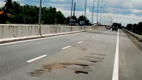 Ổ gà xuất hiện nhiều trên đường cao tốc sẽ không đảm bảo an toàn cho phương tiện lưu thông - (Ảnh: Nhật Tân) |
