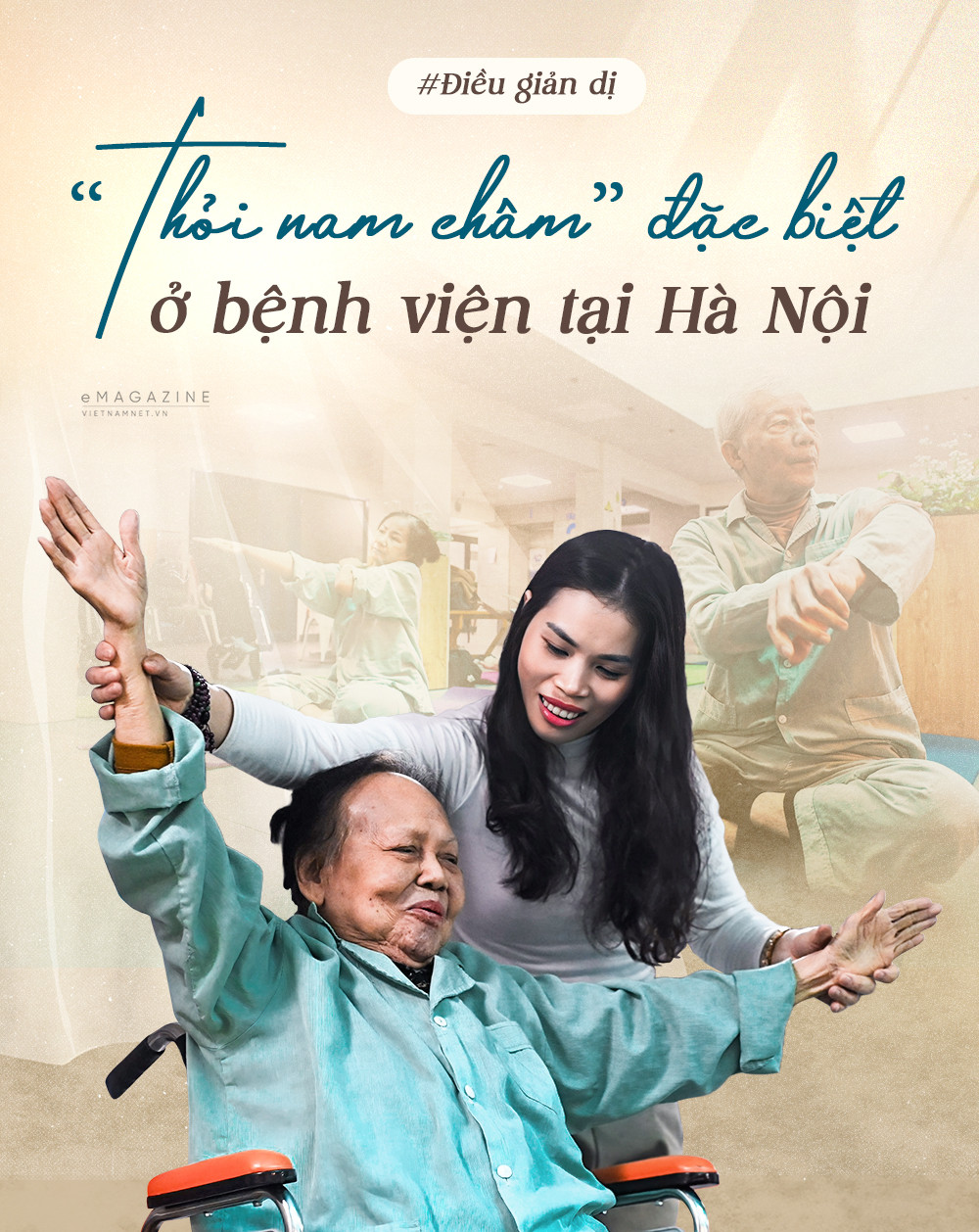 Một trong những học viên kiên trì, chăm chỉ nhất là cụ bà Trần Thị Phúc Mai, 95 tuổi. Cụ Mai điều trị dài ngày ở viện, coi nơi đây như ngôi nhà thứ 2. Mỗi ngày, cứ chiều chiều, mỗi khi gần đến giờ “đặc biệt”, cụ lại giục người nhà đẩy xe lăn đến.